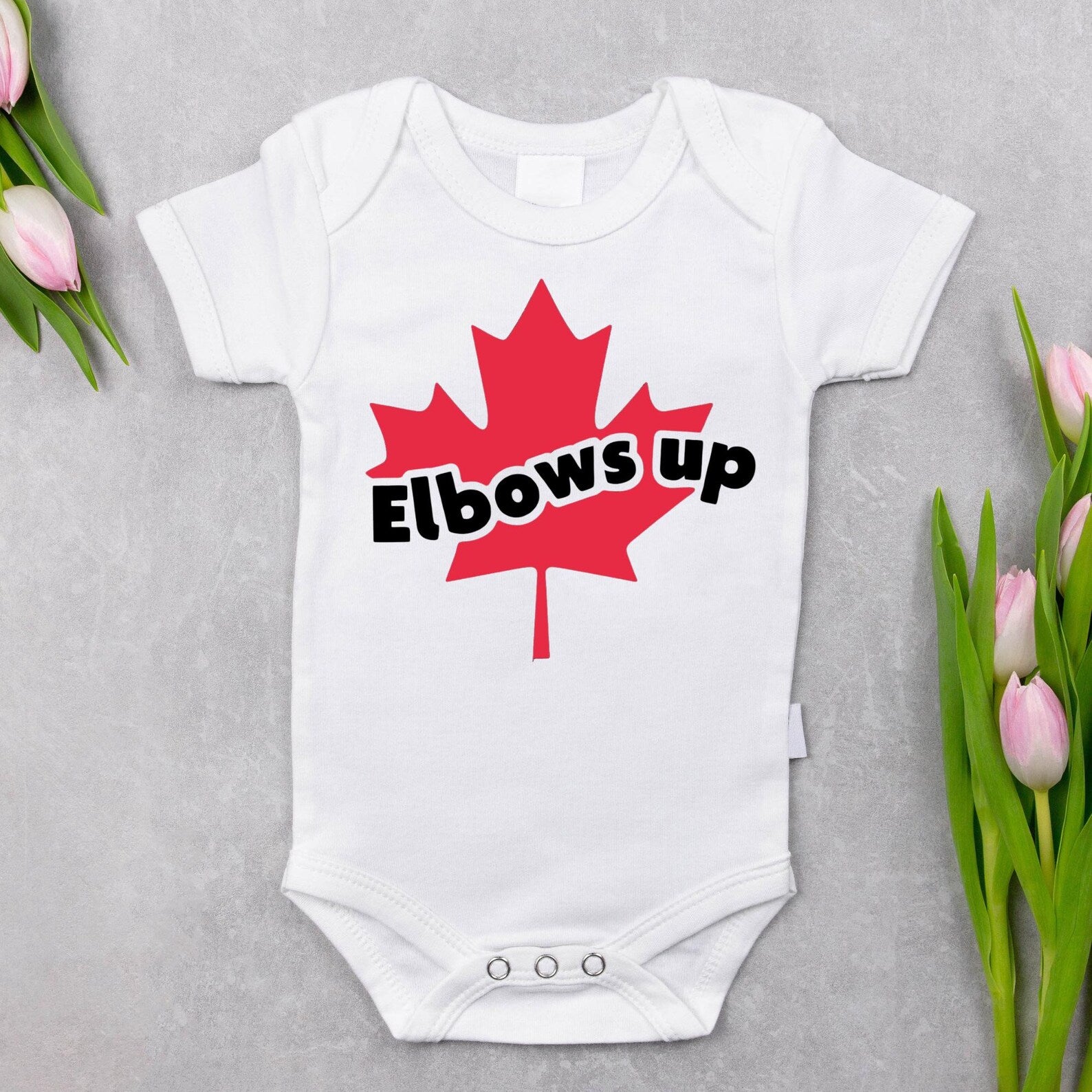 Hockey Baby Onesie, Canadian Hockey Baby Bodysuit, Elbows Up Shirt, Funny Baby Outfit, Ice Hockey Baby Gift, Maple Leaf Baby Clothes