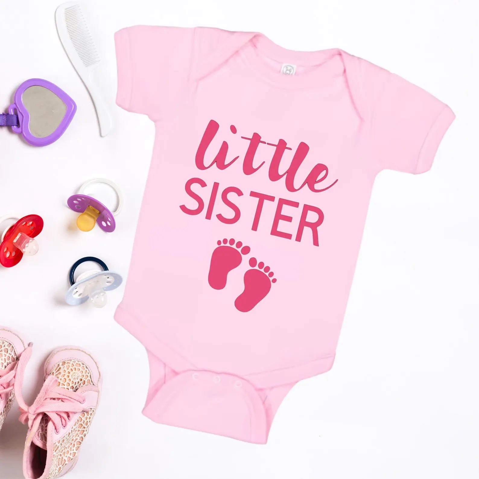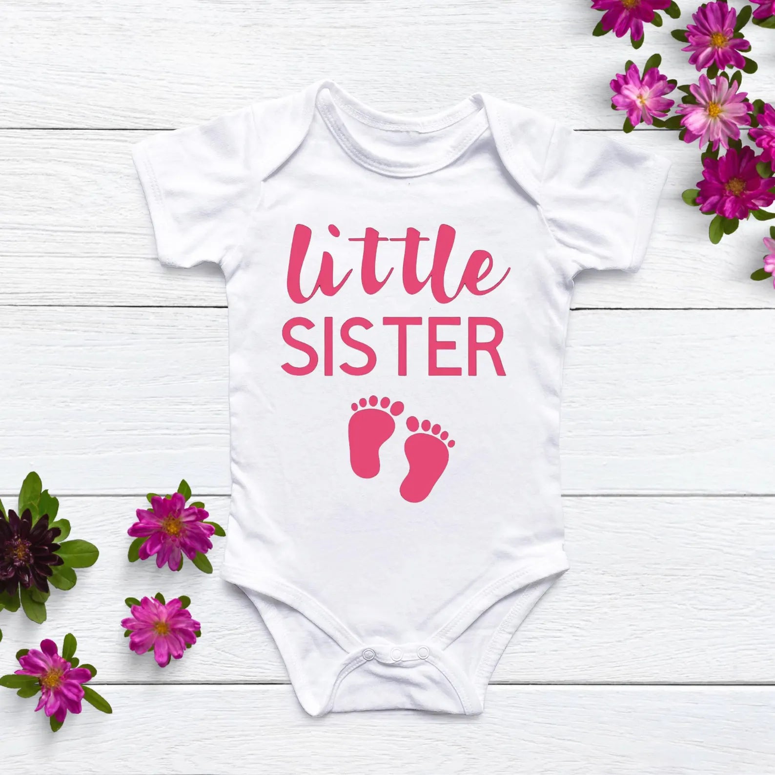 👶 The Cutest Little Sister is Here! Celebrate your newest family addition with this adorable "Little Sister" onesie—perfect for baby girls joining the crew! Whether you're making a sweet sibling announcement or looking for a cute everyday outfit, this onesie is a must-have.
