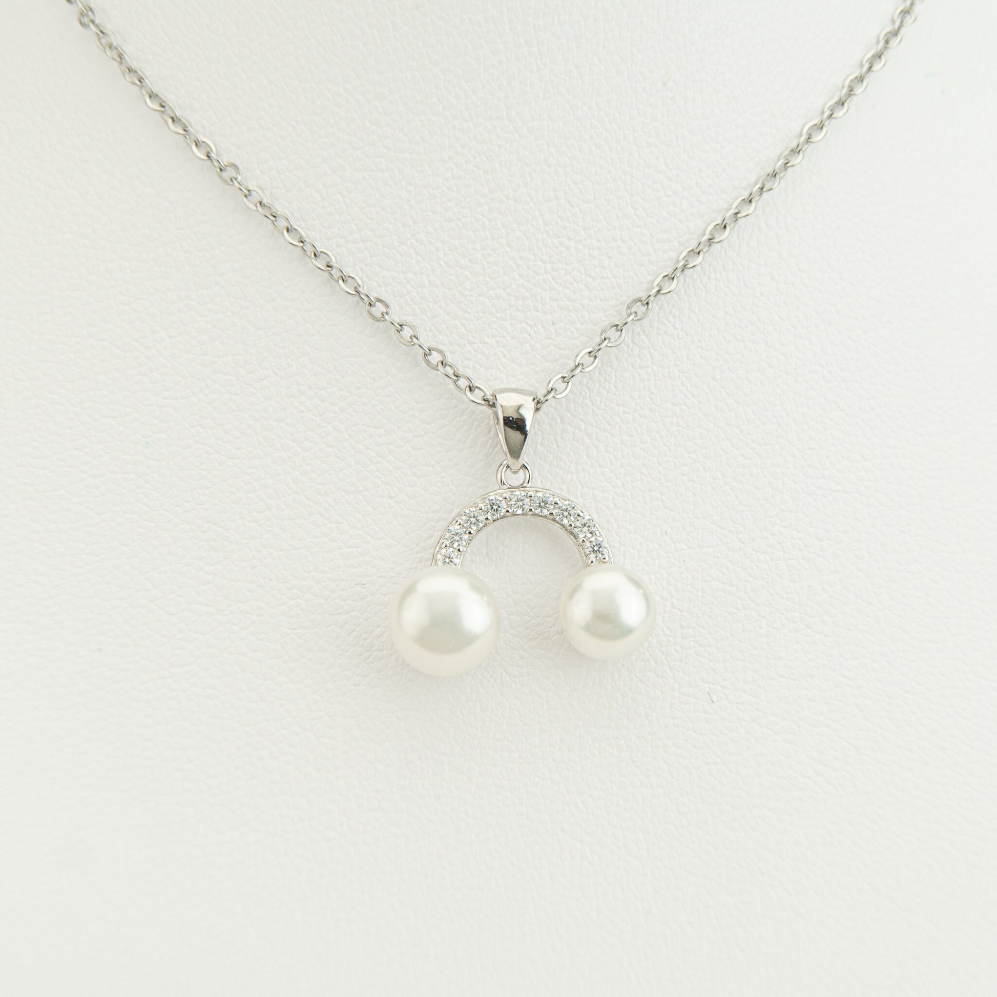 Mother of Pearl Horseshoe Charm, Pearl Necklace, Horseshoe Pearl Necklace, Pearl Pendant, CZ Pendant, Shiny Horseshoe Pendant