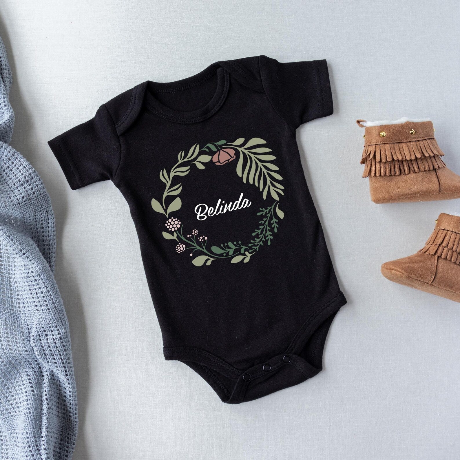 Personalized Baby Name Onesie, Custom Floral Wreath Bodysuit, Baby Shower Gift, Newborn Outfit, Cute Baby Clothes, Custom Baby Romper