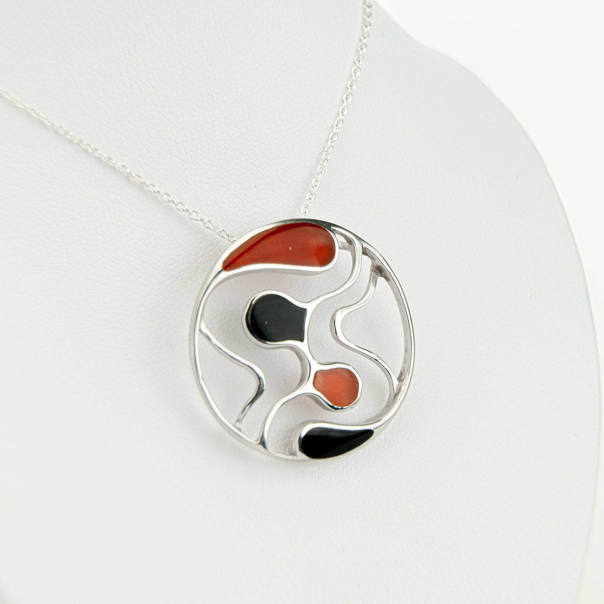 Spiral Pendant with 🔴 Red Agate and 🔘 Onyx, a captivating piece of jewelry that will add a touch of elegance and intrigue to any outfit. This unique pendant showcases the timeless beauty of natural gemstones, expertly crafted into a stunning spiral design. 💫🌟