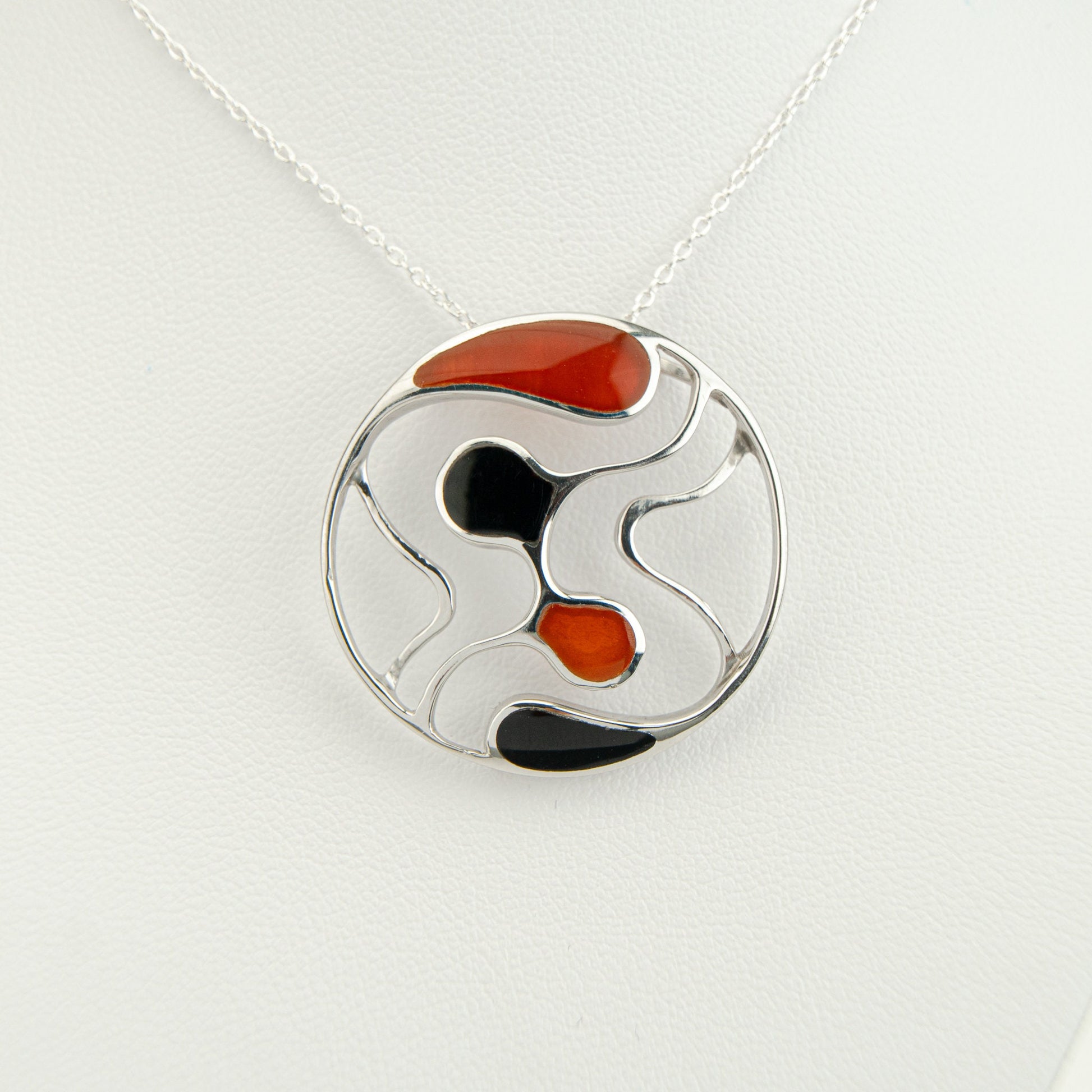 Red Agate and Onyx Swirl Charm, Round Charm Pendant, Life of Circle Pendant, Silver Spiral Pendant, Spiral Pendant, Spiral jewelry,