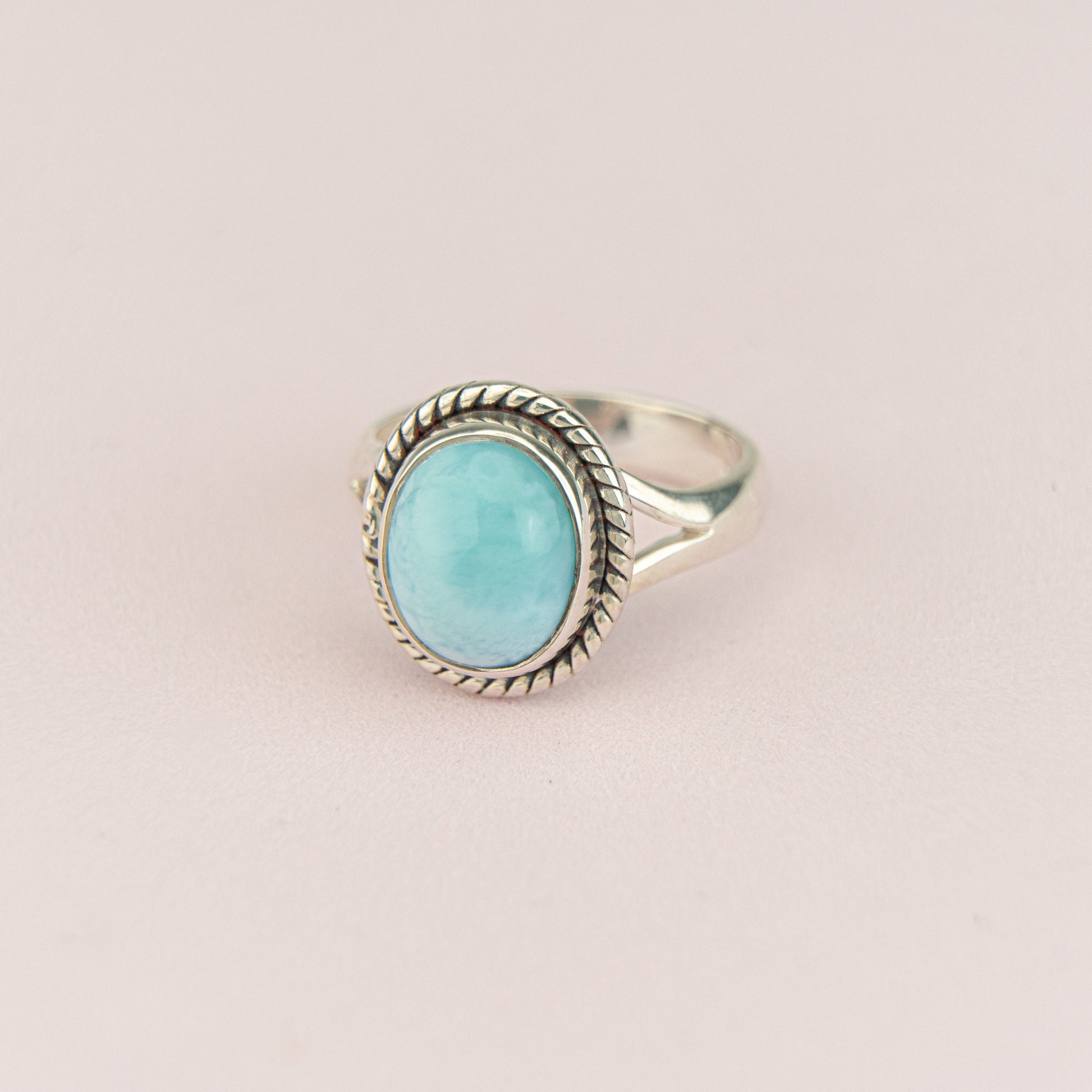 Elevate your style with the captivating allure of Larimar, showcased in our exquisite Sterling Silver Ring. Crafted with love and precision, this ring brings together the soothing essence of the ocean and the elegance of sterling silver. 🌊💍
