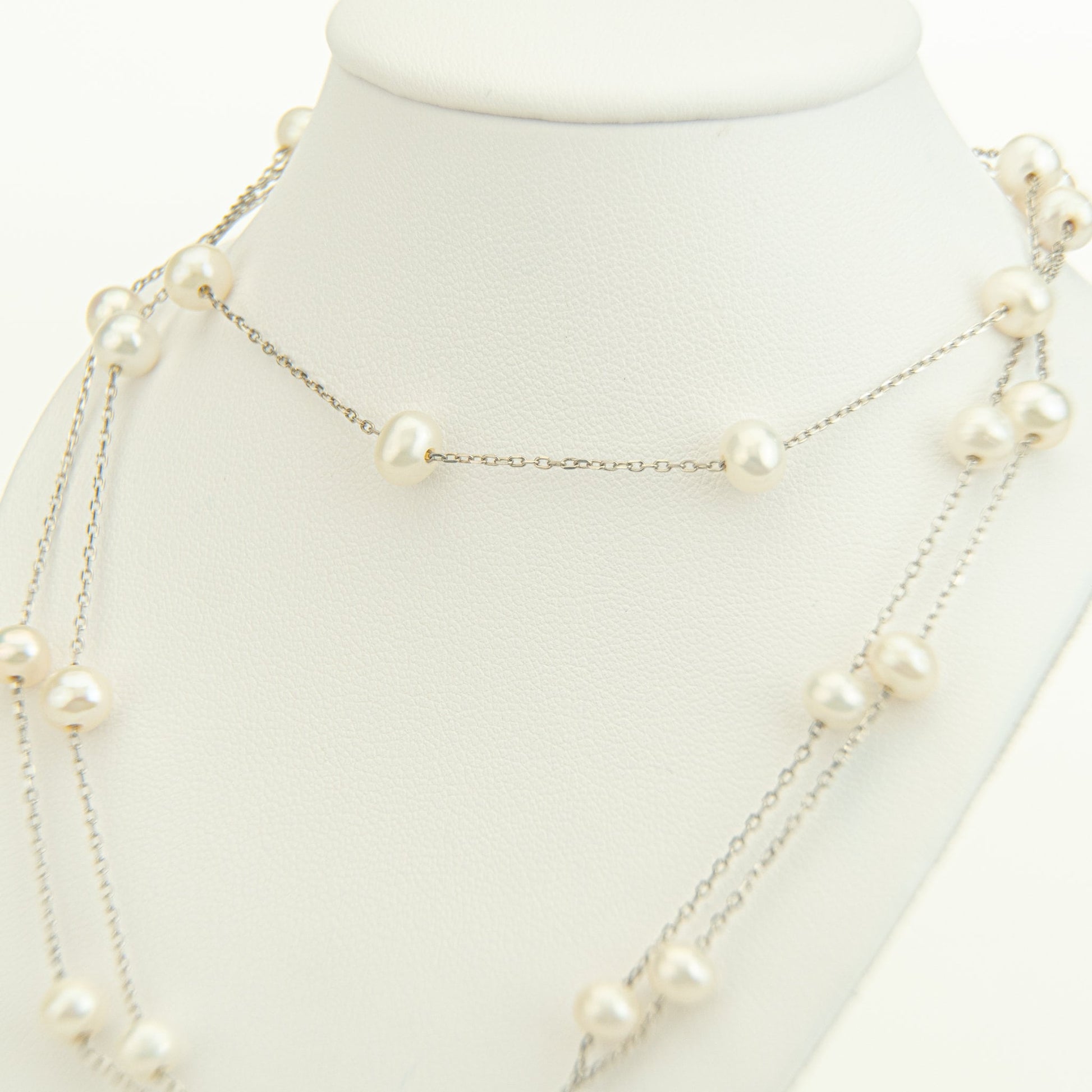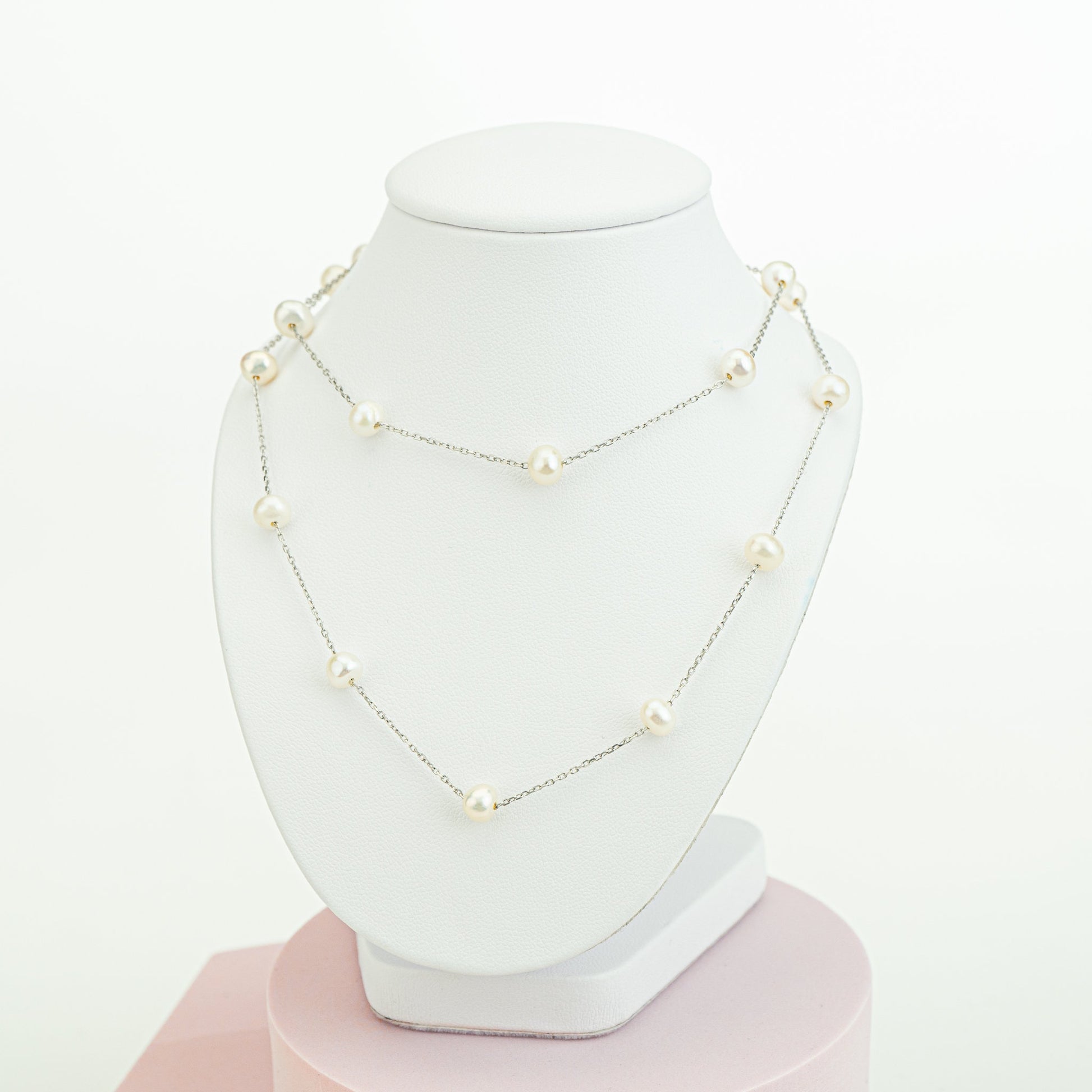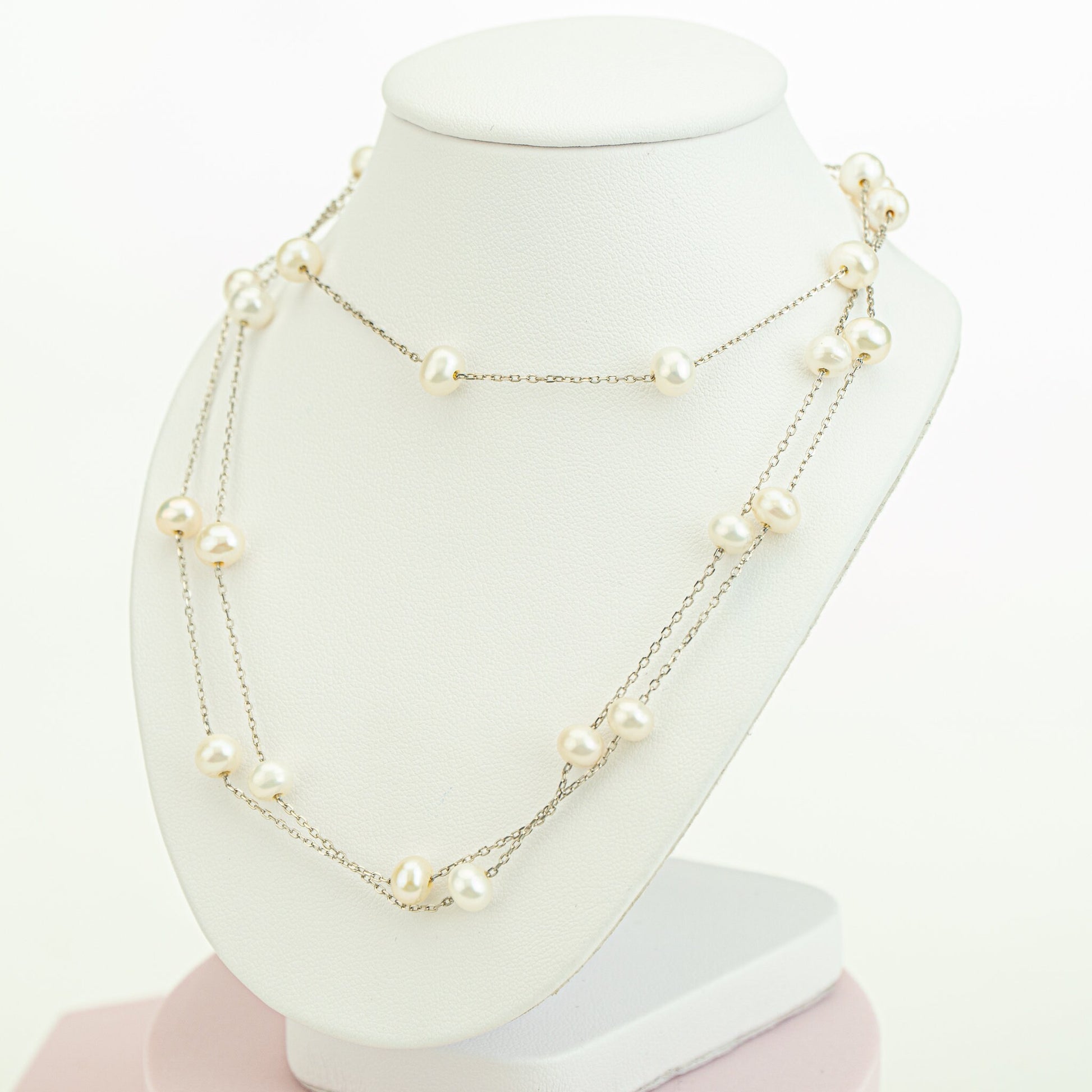 White Pearl Necklace - 2 or 3 Strand Illusion Necklaces with 925 Silver - Dainty Pearl Necklace, Tiny Pearl Necklace, Bridesmaid Gifts